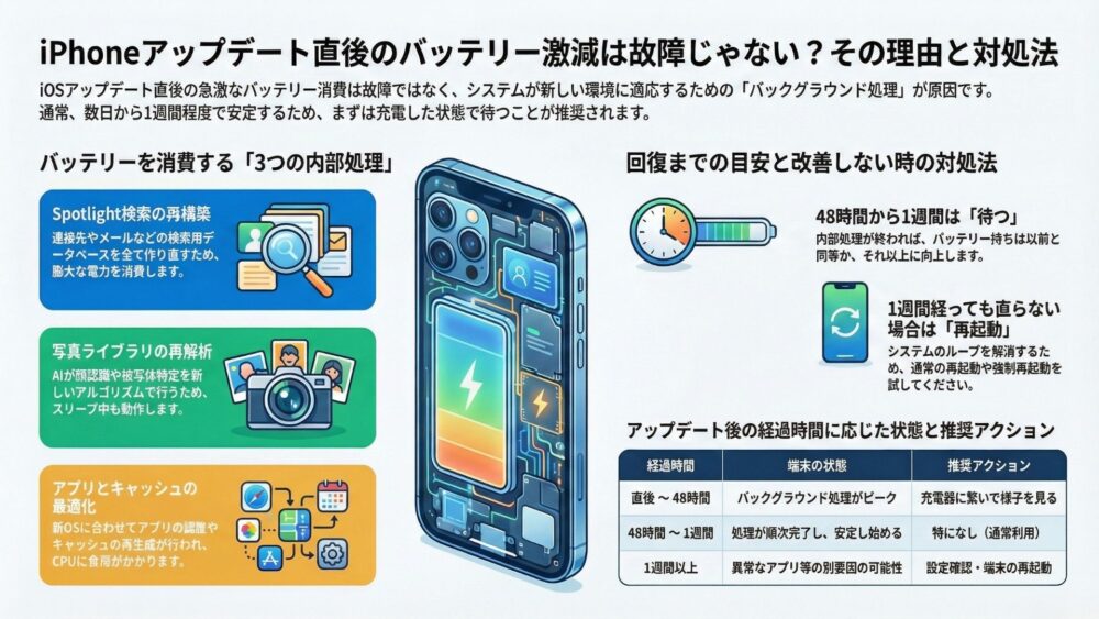 iPhoneアップデート直後にバッテリーが急激に減る4つの理由と対処法【いつまで続く?