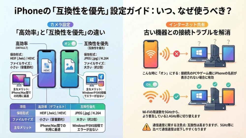 【iPhone】「互換性を優先」とは?カメラとテザリングの設定を徹底解説